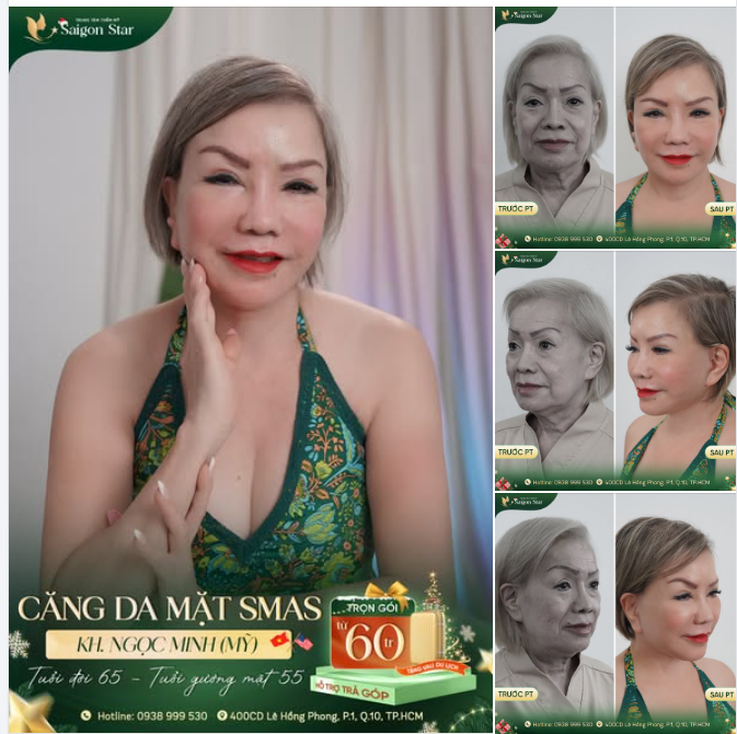Trải qua nhiều giai đoạn lão hóa, từ các nếp nhăn động dần trở thành nếp nhăn tĩnh, các vùng da và cơ chùng nhão, chảy xệ, lỏng lẻo. Khiến gương mặt chị Kim Phụng (Việt kiều Mỹ) trông già hơn tuổi thật rất nhiều.