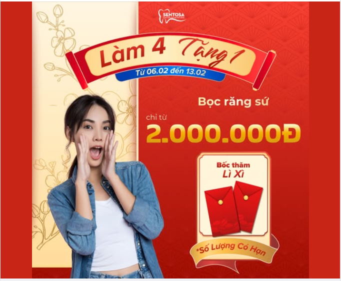 Để giúp khách dễ tiếp cận điều trị, Nha khoa Sentosa giảm đến 50% chi phí bọc răng sứ trong tháng này, kèm theo loạt đặc quyền: