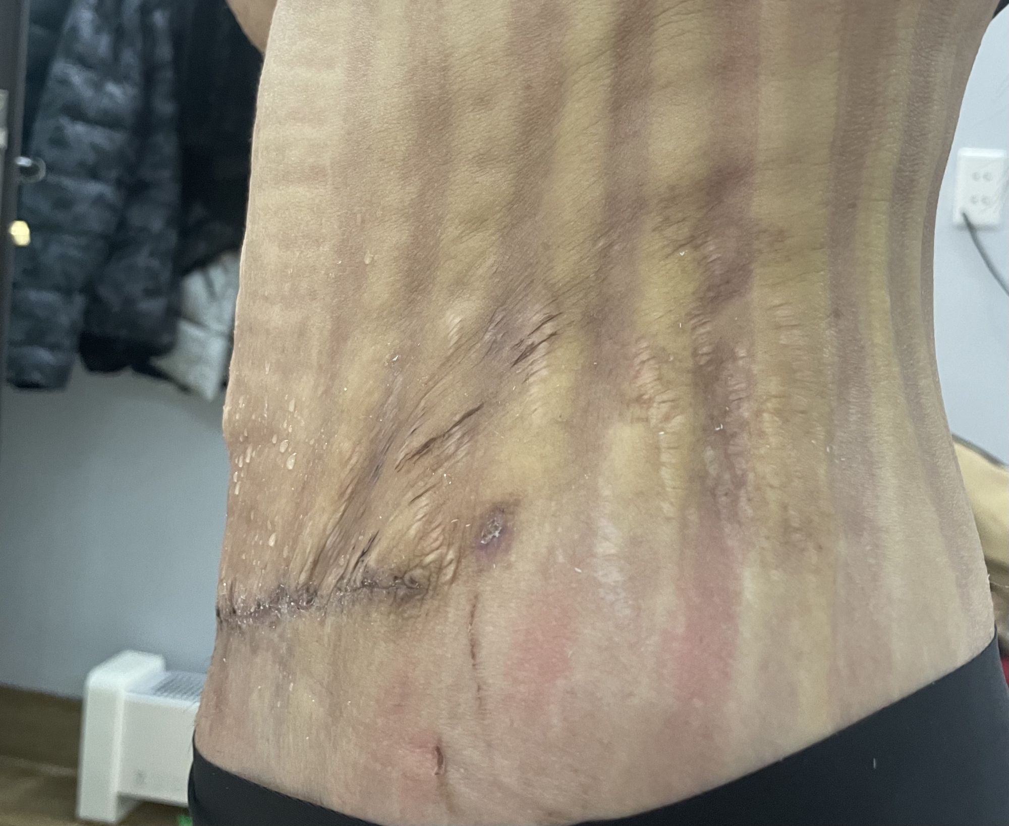 Tôi làm hút mỡ và tạo hình thành bụng được 1 tháng, ko hiểu sao vết mổ của tôi bị mưng lên 2 chỗ và mãi ko khô tôi nhìn vào thì thấy vết chỉ khâu vẫn còn, có phải vì vẫn còn chỉ nên vết môt của tôi mới bị như vậy, và bụng t bị nhăn nhúm như này 3-6 tháng nữa có hết không? Mong các bsi trả lời giúp, tôi xin cảm ơn