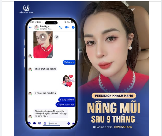 Hạnh phúc nhất của Thẩm mỹ Vũ Quang là luôn được khách hàng chủ động feedback gửi về những hình ảnh xinh đẹp với sự hài lòng Xem thêm nâng mũi
