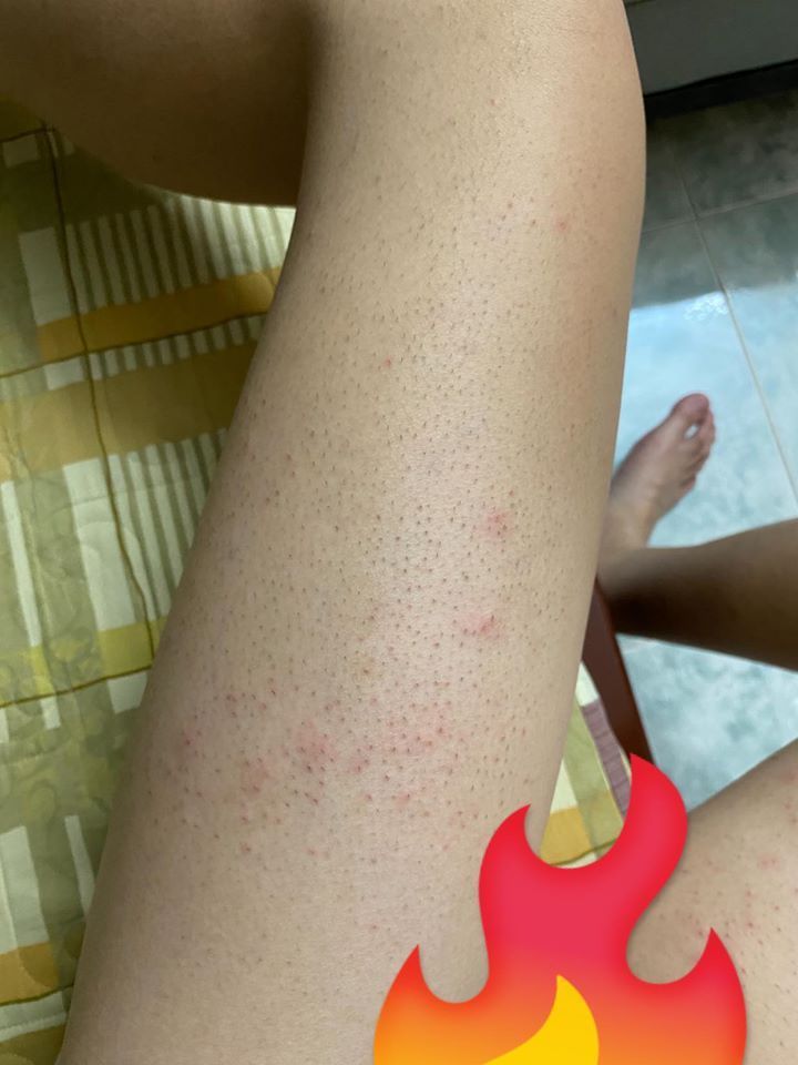 Thưa bác sĩ, em mới làm liệu trình triệt lông chân đc 2 buổi. Buổi đầu tiên spa cạo ko sát chân lông thì ko có vấn đề gì. Nhg sang buổi thứ 2 cạo sát chân lông thì về đc 1 2 ngày bị mẩn lên thế này. Chân em cứ cạo sát chân lông là sẽ bị mẩn lên và ngứa. Em thường xuyên dùng tdc và dùng gel lô hội hàng ngày. Bác sĩ tư vấn giúp em cách khắc phục tình trạng này với ạ! Cảm ơn bác sĩ!