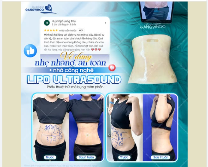 Được người thân giới thiệu, chị tìm hiểu và quyết định chọn công nghệ giảm mỡ Lipo Ultrasound tại BVTM Gangwhoo để tân trang vóc dáng. Chị chia sẻ trải nghiệm của mình: "Mình khá hài lòng với trải nghiệm và chất lượng dịch vụ tại đây, mình cảm thấy vùng bụng trông gọn gàng hơn, mặc đồ cũng dễ lựa chọn hơn trước.”