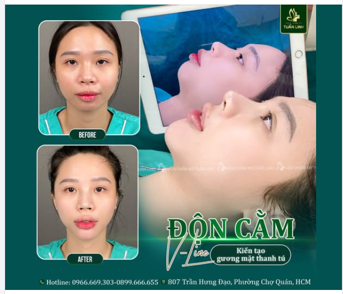 Chỉ với 15TR - Tại Tuấn Linh bạn sẽ sở hữu dáng cằm Vline chuẩn Hotgirl, đẹp thời thượng, hợp phong thủy. Xem thêm độn cằm