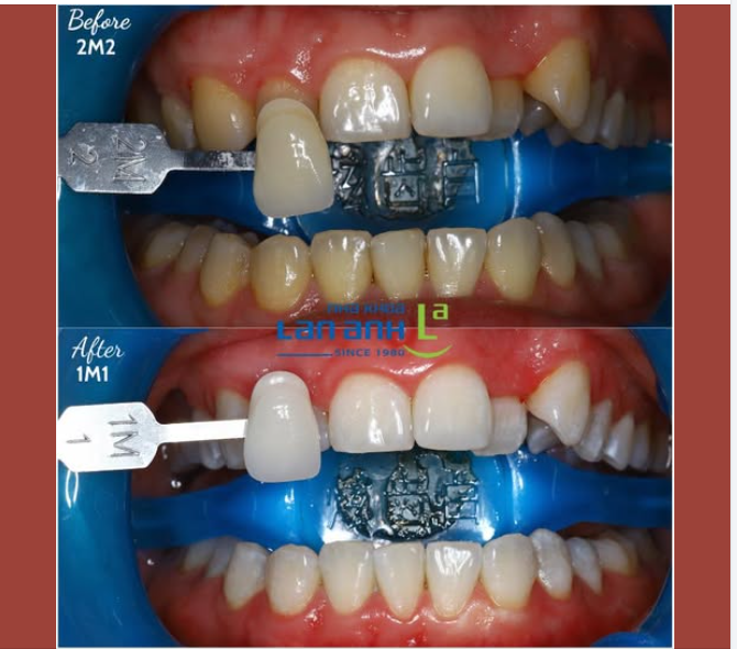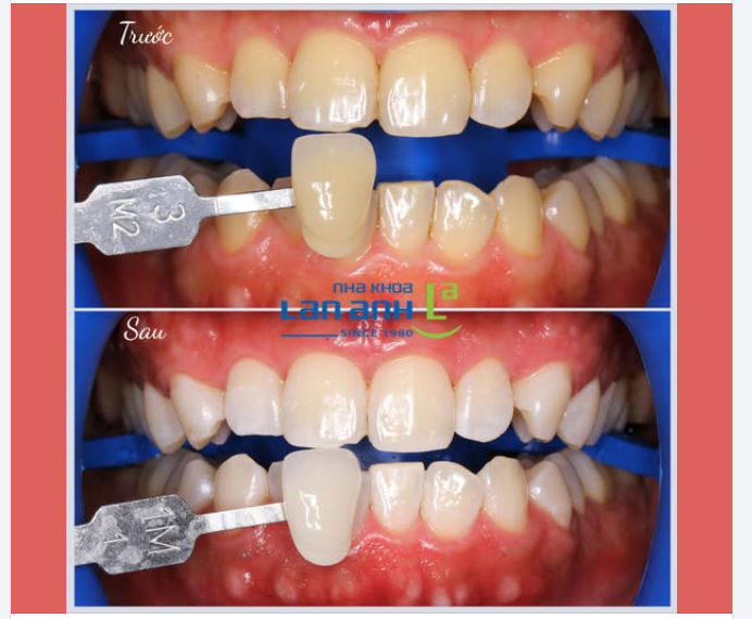 Tẩy trắng răng: là phương pháp dùng các gel tẩy và năng lượng ánh sáng tạo ra phản ứng oxy hóa làm thay đổi màu sắc răng một cách nhanh chóng. Hiện nay, tẩy trắng răng được nhiều khách hàng tin tưởng lựa chọn để cải thiện tình trạng răng ố vàng, mang lại hiệu quả thẩm mỹ.