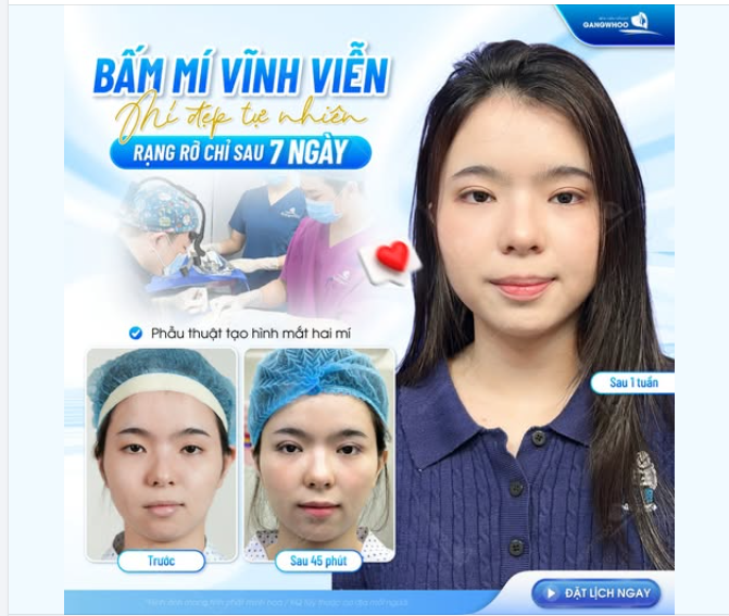 Siêu ưu đãi đầu năm: giảm ngay 3tr dịch vụ cắt mí dành cho 5 khách hàng nhanh tay nhất đăng ký qua link: https://gangwhoo.com/cat-mi-gia-tot-nhat
