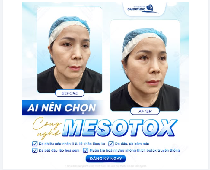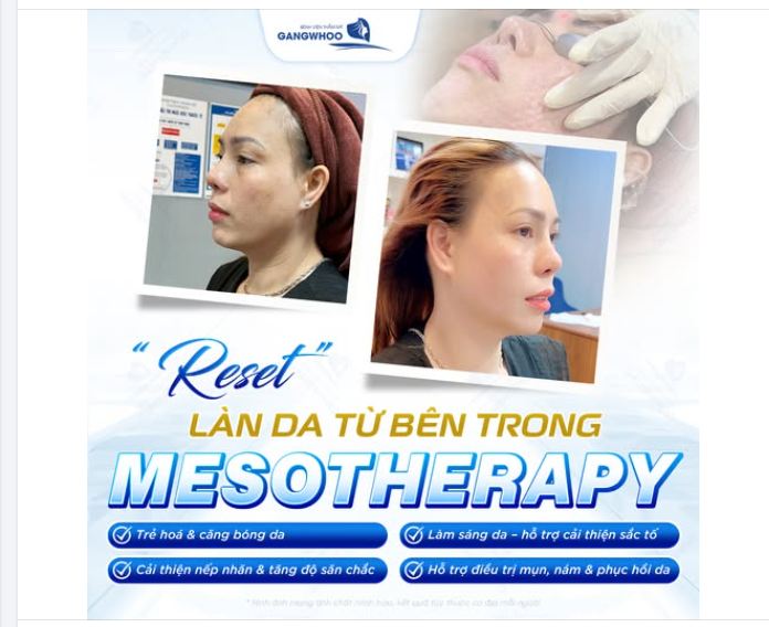 Sau khi trải nghiệm xong 1 liệu trình tiêm Meso tại Bệnh viện thẩm mỹ Gangwhoo, chị khách chia sẻ: " Chị nghiện tiêm Mesotherapy tại Bệnh viện thẩm mỹ Gangwhoo quá đi, da sau khi tiêm đẹp xuất sắc nó trắng, nó căng, nó bóng ![]()