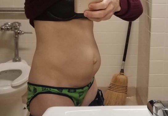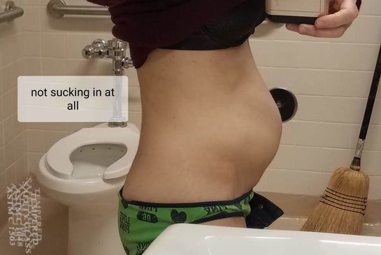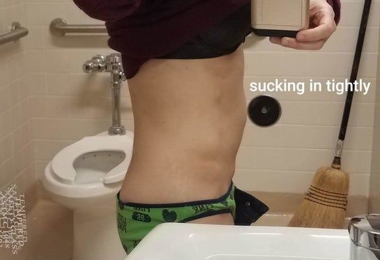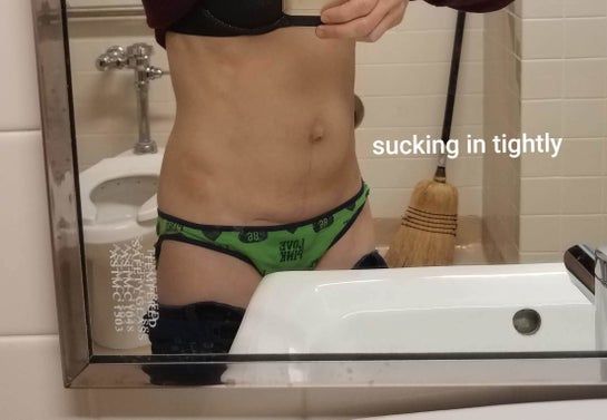 Da của tôi khá săn chắc và không khiến tôi bận tâm lắm. Tuy nhiên, bụng tôi bị lồi vượt quá ngực, xin hãy nhìn ảnh chụp ngang. Nếu tôi hóp cơ bụng, thì bụng tôi có thể phẳng lại. Nhưng tôi không thể tập trung hóp bụng cả ngày được. Tôi thấy tạo hình thành bụng toàn phần có lẽ hơi quá mức, đặc biệt còn phải mất rất lâu mới hồi phục. Tôi đã mổ đẻ 3 lần, đứa con bé nhất của tôi đến nay được 20 tháng tuổi. Tôi muốn một thủ thuật ít xâm lấn hơn. Liệu ThermaLipo có dành cho một người có rất ít mỡ như tôi không?