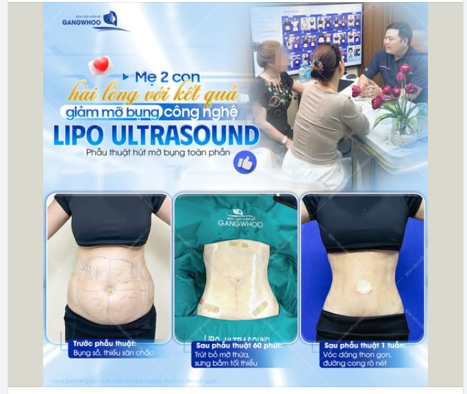 Sau khi tìm hiểu thông tin và đến BVTM Gangwhoo để được bác sĩ thăm khám, tư vấn trực tiếp, chị quyết định lựa chọn giảm mỡ bụng bằng công nghệ Lipo Ultrasound với mong muốn vòng 2 trông gọn gàng và cân đối hơn.