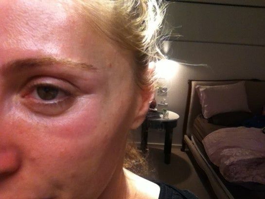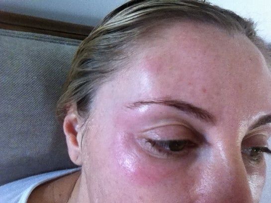 Tôi đã tiêm botox được 7 năm và không gặp vấn đề gì, trừ thi thoảng có một số vết bầm. Hôm qua tôi tiêm lại để xóa nếp nhăn trán, nếp cau mày và vết chân chim. Tổng cộng bác sĩ tiêm cho tôi 65 đơn vị, nhiều hơn liều lượng thường được tiêm trước kia và lúc tiêm rất nhức. Vài giờ sau tôi bị sưng đỏ, nhức khắp quanh mắt và trán. Tôi đi kiểm tra với bác sĩ chuyên khoa thì họ bảo đó là phản ứng dị ứng, còn người tiêm cho tôi thì nói cô ấy chưa gặp tình trạng như này bao giờ.