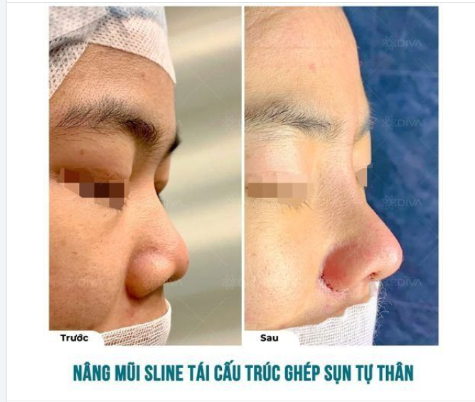- Nâng mũi Sline sụn tự thân