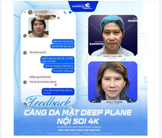 Không chỉ là một chuyến đi làm đẹp, mà còn là hành trình tìm lại sự tự tin với diện mạo trẻ trung hơn. Khách hàng quốc tế đã lựa chọn Bệnh viện thẩm mỹ Gangwhoo để thực hiện phẫu thuật căng da mặt toàn phần + Deep Plane nội soi 4K, với mong muốn cải thiện tình trạng da chảy xệ và nếp nhăn do thời gian.