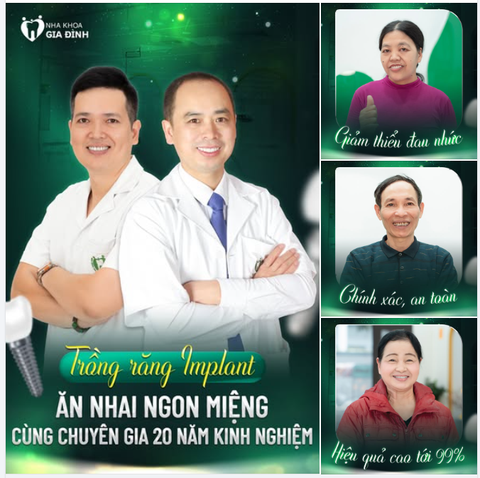 Quyết định trồng răng hôm nay chính là sự đầu tư cho một nụ cười khỏe đẹp, hạnh phúc ngày mai. Cô chú/ anh chị hãy inbox Nha khoa Gia Đình để nhận tư vấn sớm nhất nhé!