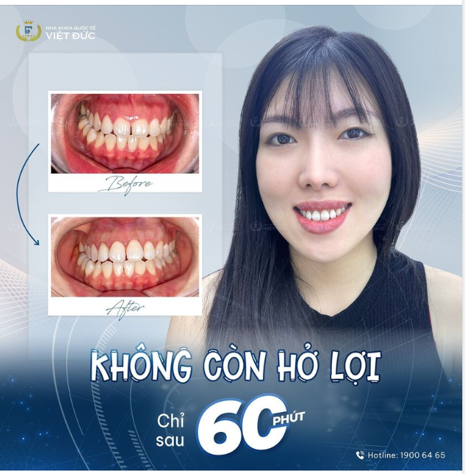 Được bạn bè giới thiệu, Hồng Trang đã đến nha khoa Quốc tế Việt Đức để khắc phục nhược điểm. Sở hữu hàm răng đều, nụ cười rạng rỡ.