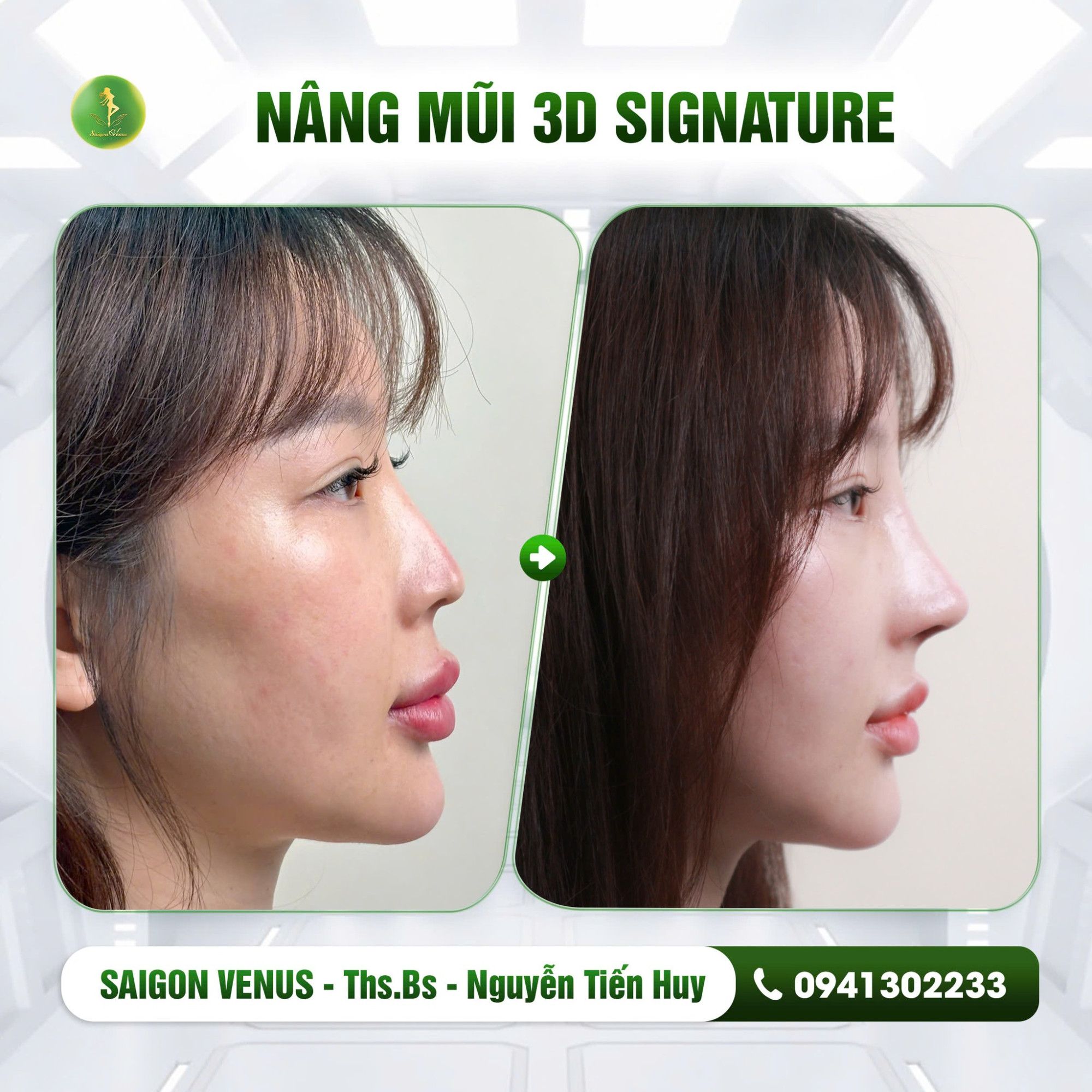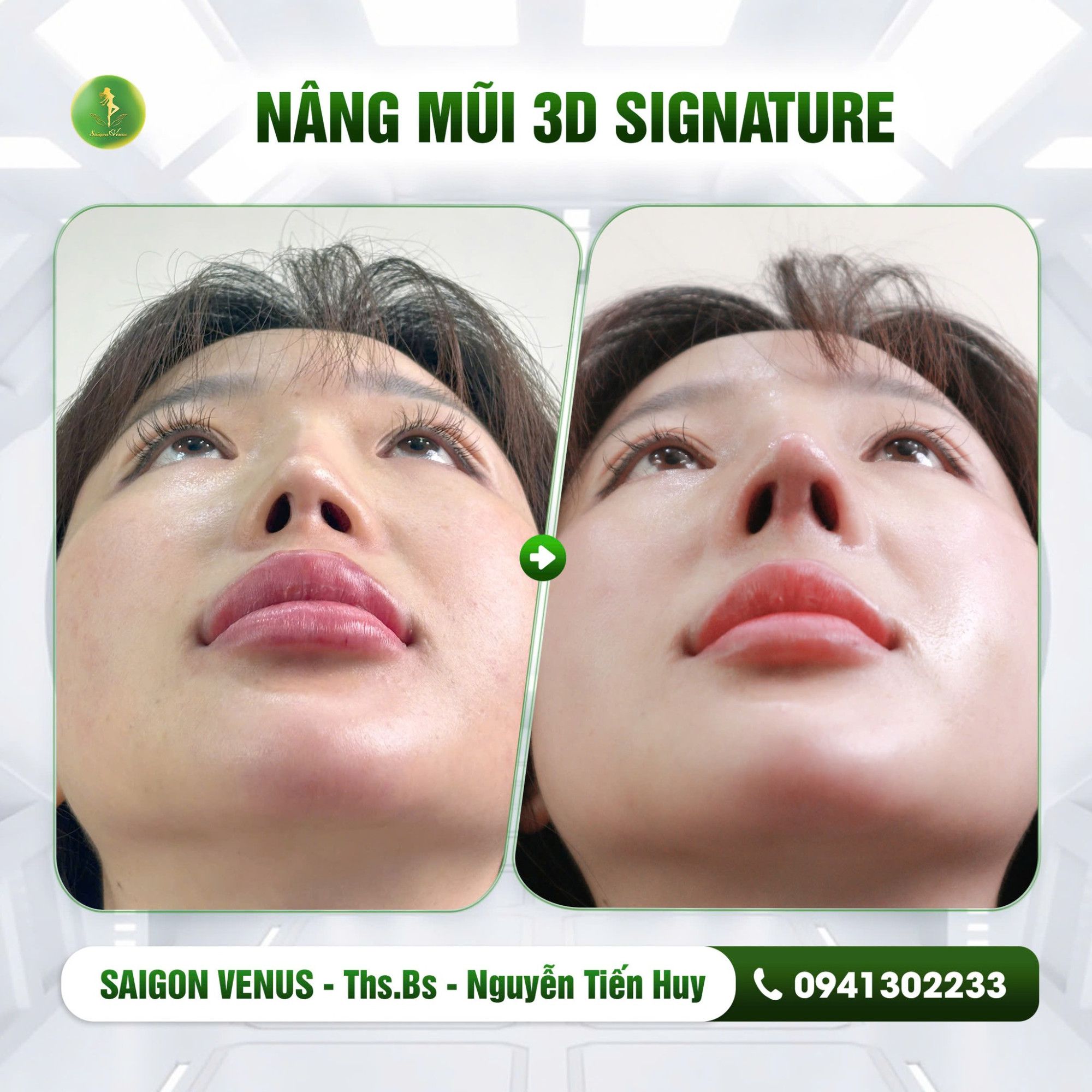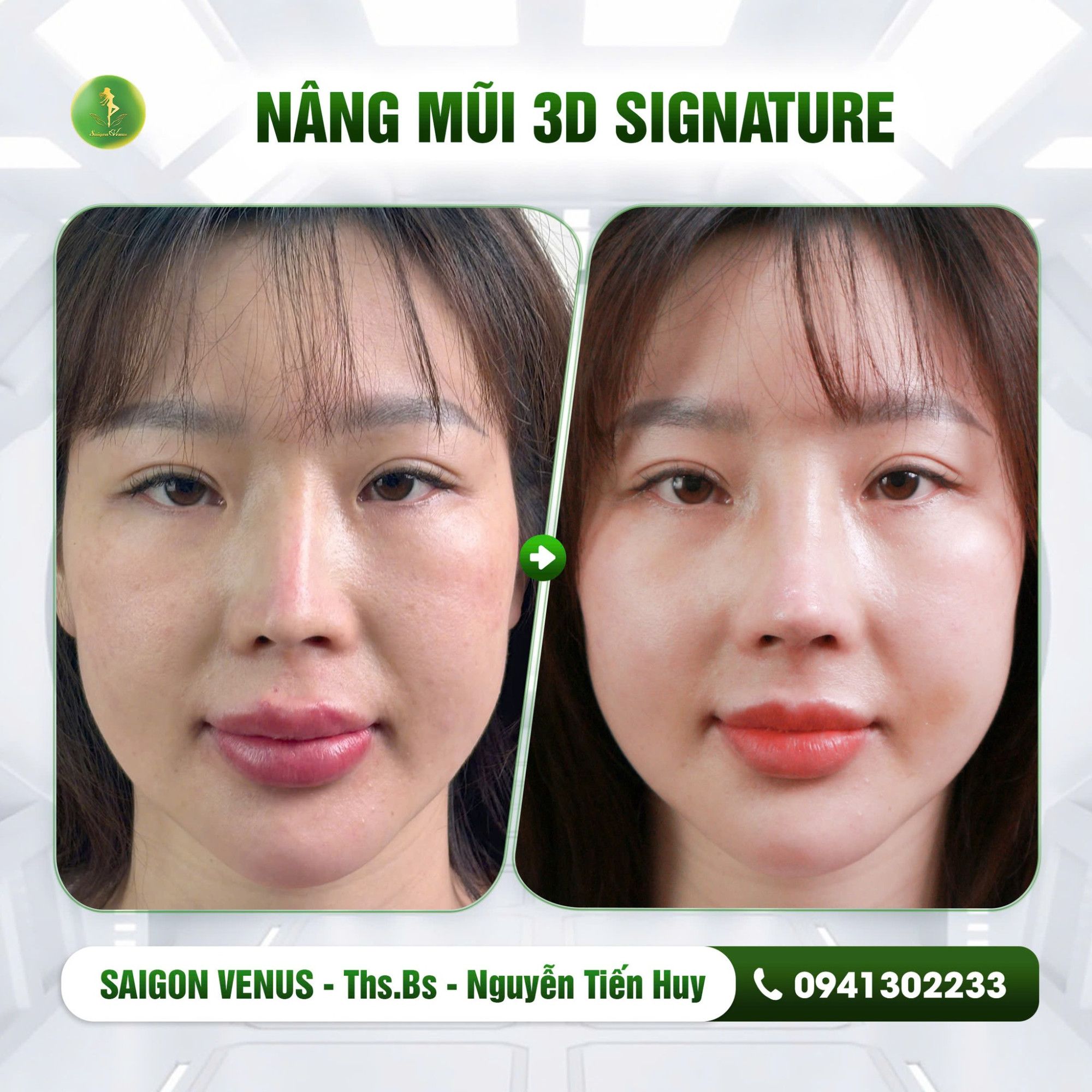 3D Signature – Công nghệ nâng mũi cá nhân hóa tiên phong tại Việt Nam. Không chỉ là một ca phẫu thuật thông thường, nâng mũi 3D Signature tại SaiGon Venus là bước đột phá trong ngành thẩm mỹ, giúp mỗi khách hàng sở hữu dáng mũi độc nhất, phù hợp với từng đường nét khuôn mặt. Trực tiếp tham gia vào quá trình thiết kế dáng mũi trước khi thực hiện, bạn sẽ hoàn toàn yên tâm về kết quả sau nâng.
