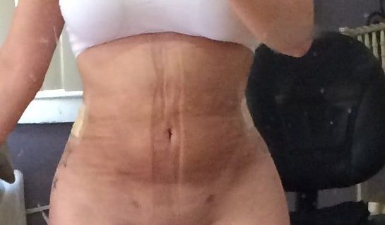 Tôi muốn biết liệu sưng nề bên trên rốn sau nhiều tháng như thế có bình thường không? Sáng sớm mới thức dậy, bụng tôi hơi hơi phẳng (ảnh đầu), nhưng đến cuối ngày, bụng tôi sưng như đang mang bầu hoặc ít nhất là bụng bị nhô ra ngoài. Mặc quần áo trông rất kỳ lạ. Tôi không ngại tập luyện nếu có thể làm giảm hiện tượng này (nếu có bài tập để tập). Tôi đã giảm cân từ lúc làm phẫu thuật, mà người tôi vốn đã nhỏ sẵn rồi. Tôi cao 1m52, nặng 50 kg. Có cách nào để biết nếu cơ bụng đã thắt lại bị xổ quá mức không?
