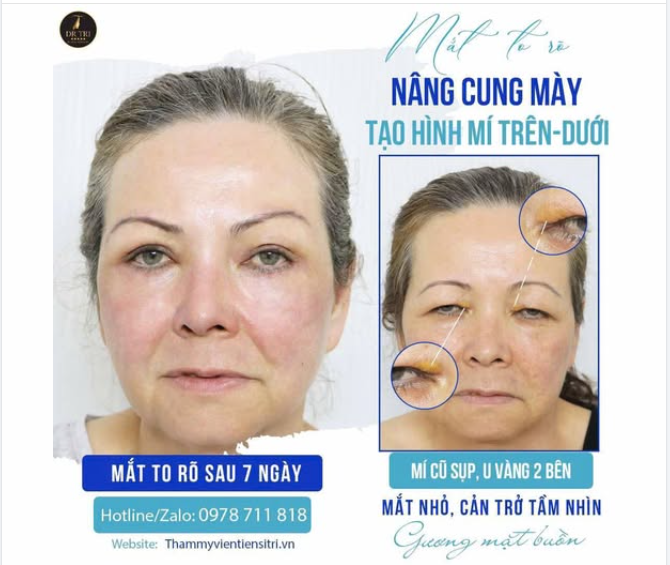 Xử lý da chùng mí trên, nâng cao cung mày.