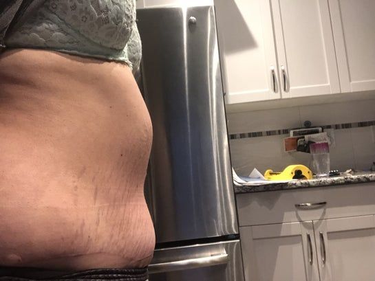 Tôi muốn biết liệu sưng nề bên trên rốn sau nhiều tháng như thế có bình thường không? Sáng sớm mới thức dậy, bụng tôi hơi hơi phẳng (ảnh đầu), nhưng đến cuối ngày, bụng tôi sưng như đang mang bầu hoặc ít nhất là bụng bị nhô ra ngoài. Mặc quần áo trông rất kỳ lạ. Tôi không ngại tập luyện nếu có thể làm giảm hiện tượng này (nếu có bài tập để tập). Tôi đã giảm cân từ lúc làm phẫu thuật, mà người tôi vốn đã nhỏ sẵn rồi. Tôi cao 1m52, nặng 50 kg. Có cách nào để biết nếu cơ bụng đã thắt lại bị xổ quá mức không?
