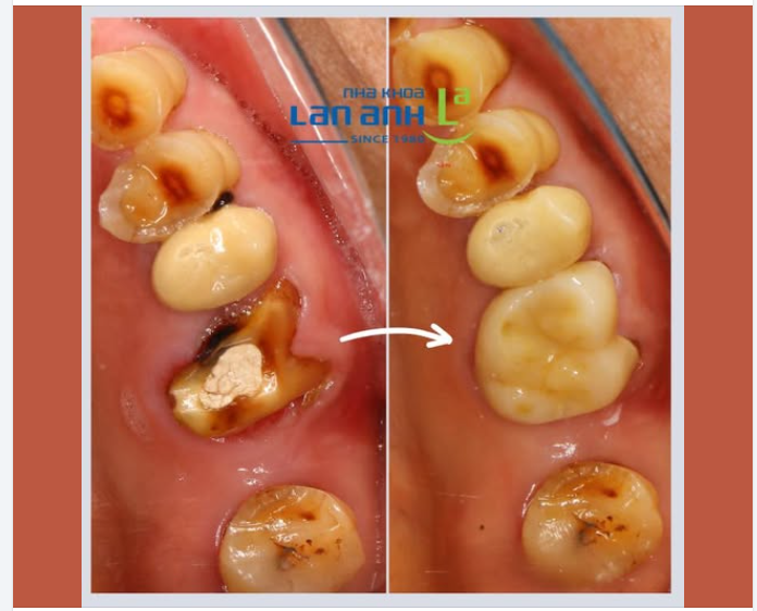 Dental Implants are the method recommended in this case. Unlike removable dentures and dental bridges, which only have a fake tooth body on the gums, Implants have a complete 3-part structure like natural teeth, including: the Implant post replacing the tooth root, the Abutment joint replacing the tooth body, and the porcelain crown.