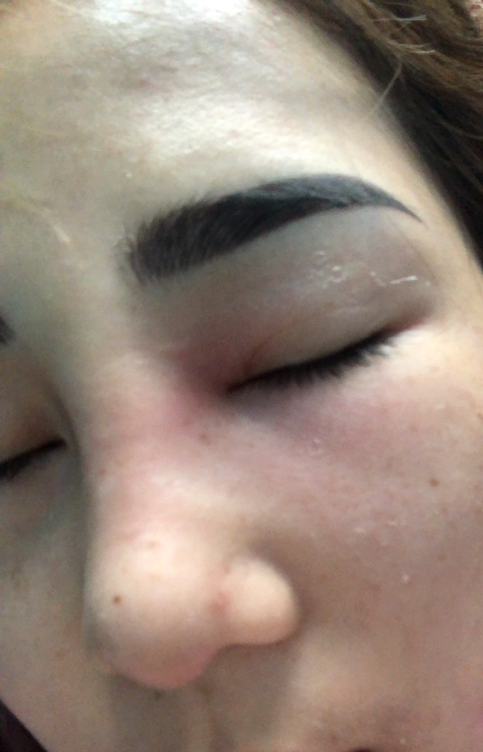 Chào bác sĩ, mũi em nâng cấu trúc đã được một năm, nay phát hiện thấy dưới trụ mũi lòi sụn và chảy một ít dịch, qua ngày hôm sau em có đi điêu khắc chân mày, về là bị sưng một bên mặt phải (mũi phải, mắt phải) không biết vấn đề em đang gặp phải là gì ạ