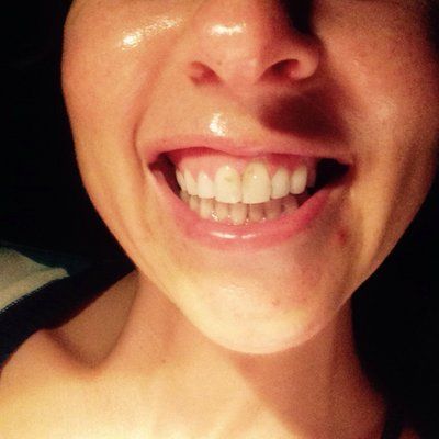 Răng cửa 12 và 21 bị sâu, vỡ men răng gây mất thẩm mỹ khi cười.