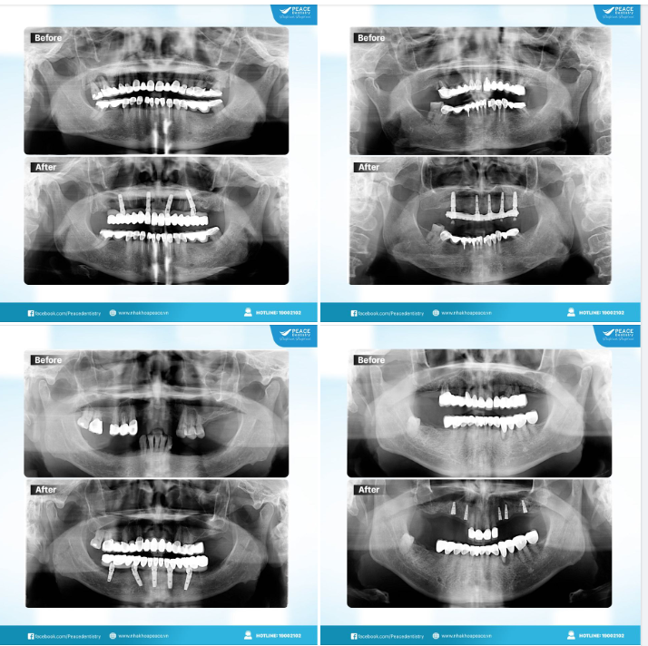 Khách hàng trên 50 tuổi đến Peace Dentistry với tình trạng: mất nhiều răng ở cả 2 hàm và đang sử dụng các ??̂̀? ??̆?? ??̛́ ??̀? ???̛?? đ?̃ ??? ???̉? ??̃ ??̣̂? ???̛́? ??̆?? ?̆? ???? ??̀ ???̂̉? ??̃ → sức nhai yếu, tụt nướu, khoảng hở giữa cầu răng sứ và nướu gây nhét thức ăn, hôi miệng. Ngoài ra, cầu răng sứ đã suy giảm tính thẩm mỹ.