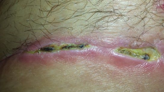 Bốn tuần sau phẫu thuật mà vết thương vẫn chưa khép miệng và có những chỗ bị đen?