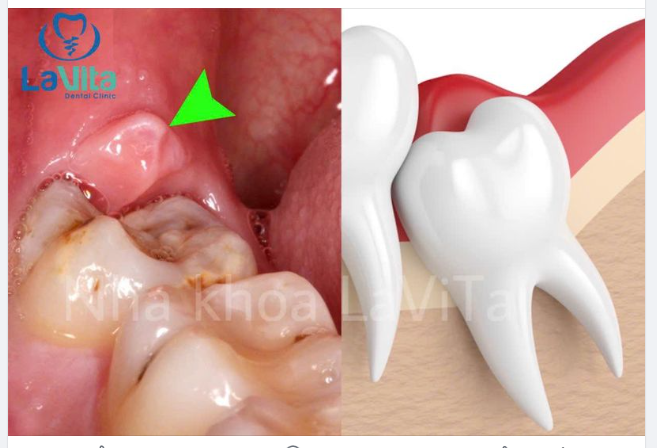 Răng khôn mọc kẹt, mọc chếch má, mọc ngang đã gây biến chứng.