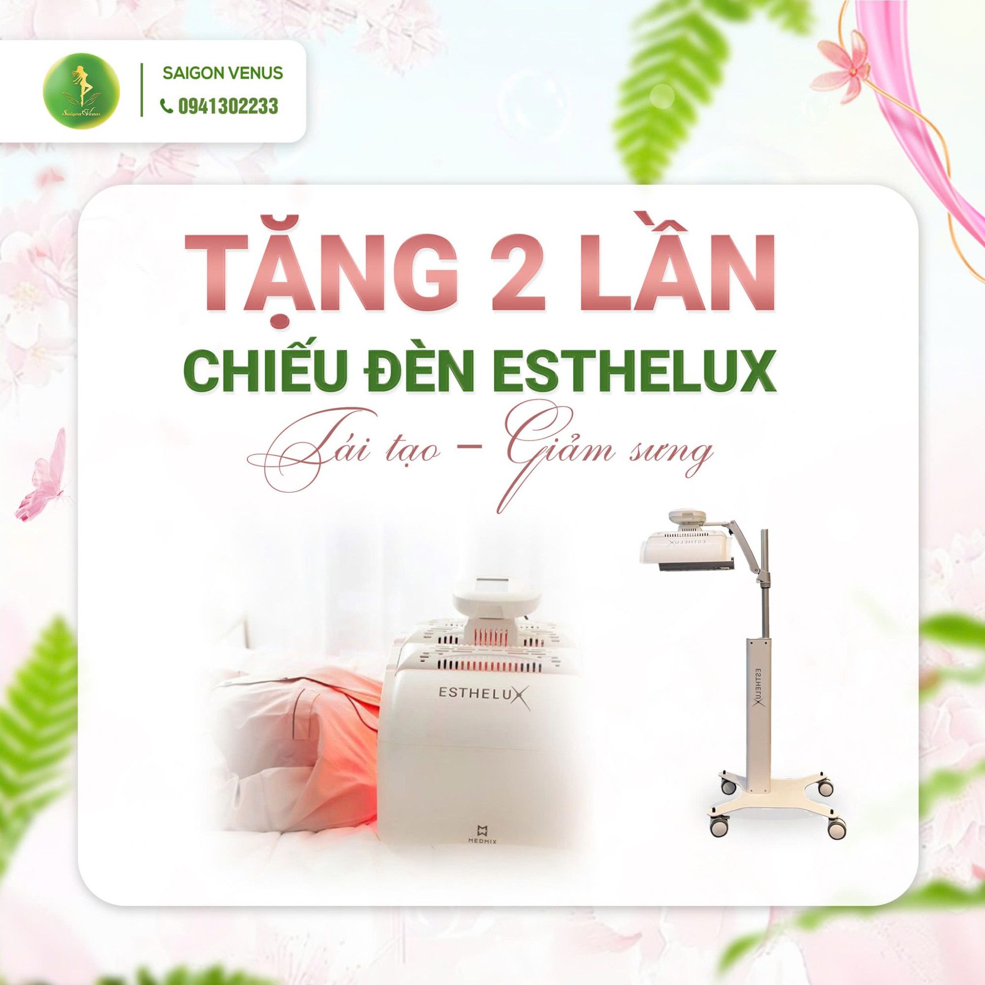 Tặng 2 lần chiếu đèn Esthelux tái tạo – giảm sưng