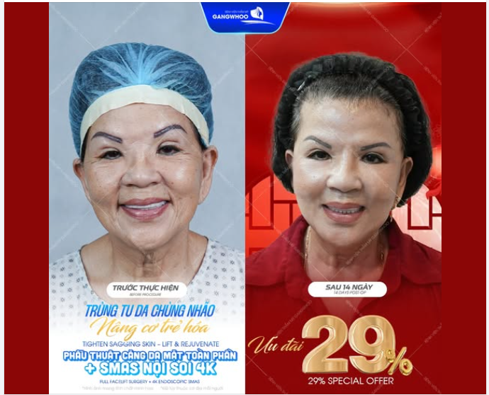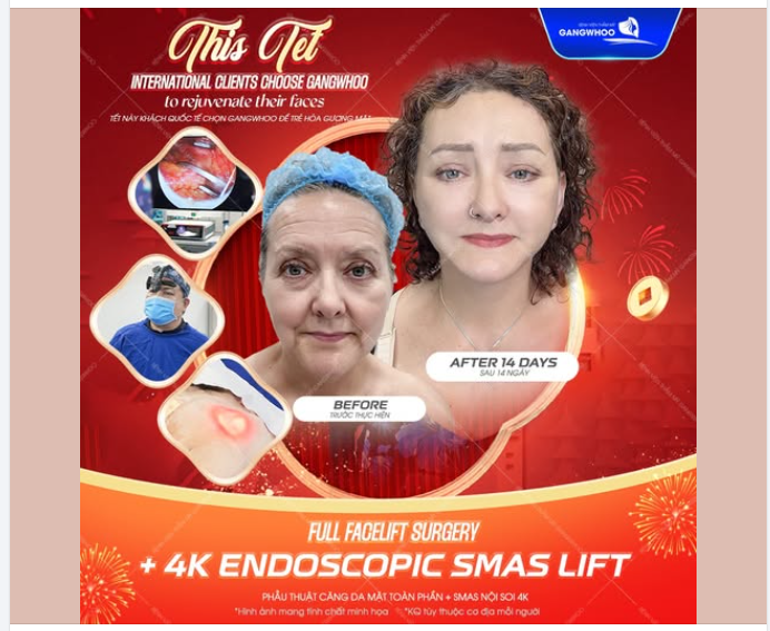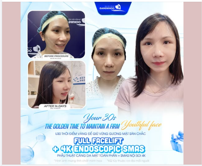 Với phẫu thuật căng da mặt toàn phần + SMAS Nội soi 4K tại Bệnh viện thẩm mỹ Gangwhoo, mang đến món quà "cải lão hoàn đồng" dành riêng cho bạn: