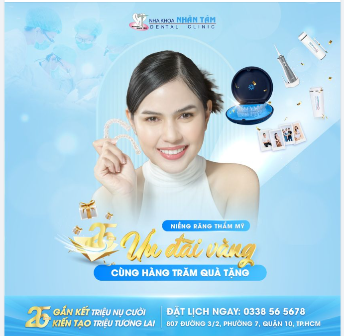 Đặc biệt, mừng sinh nhật 25 tuổi, Nha khoa Nhân Tâm triển khai chương trình “Gắn kết triệu nụ cười - Kiến tạo triệu tương lai”, cơ hội sở hữu hàm răng đẹp như mơ lại còn được nhận quà cực xịn ![]()