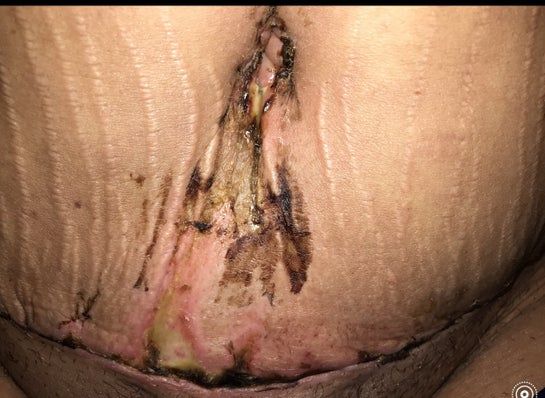 Đã 4 tuần kể từ khi tôi làm tạo hình thành bụng kèm chữa thoát vị, hút mỡ ụ hông, nâng ngực và treo ngực sa trễ, sao vết mổ vẫn chưa lành?
