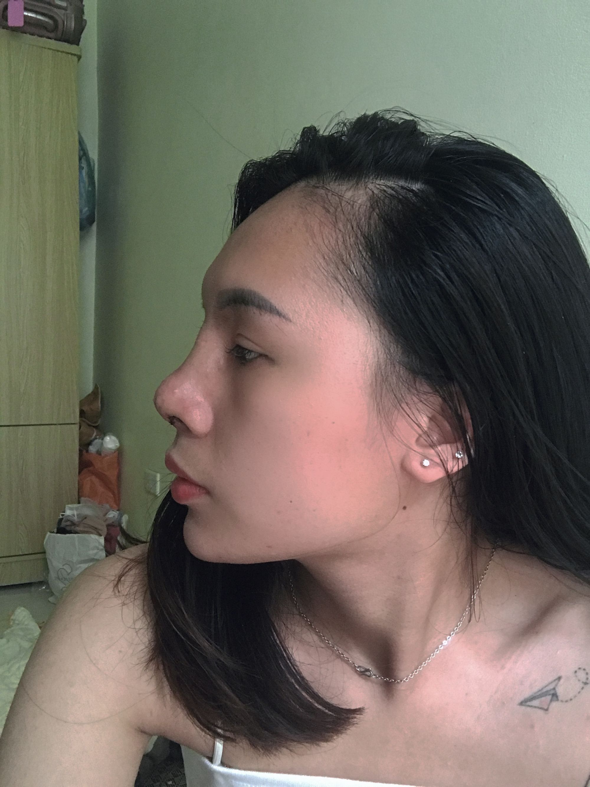 Em nâng được 5 ngày và mới tháo nẹp. Nhưng e thấy phần sống mũi ở hốc mắt khá cao. Liệu n có gom thấp lại k ạ