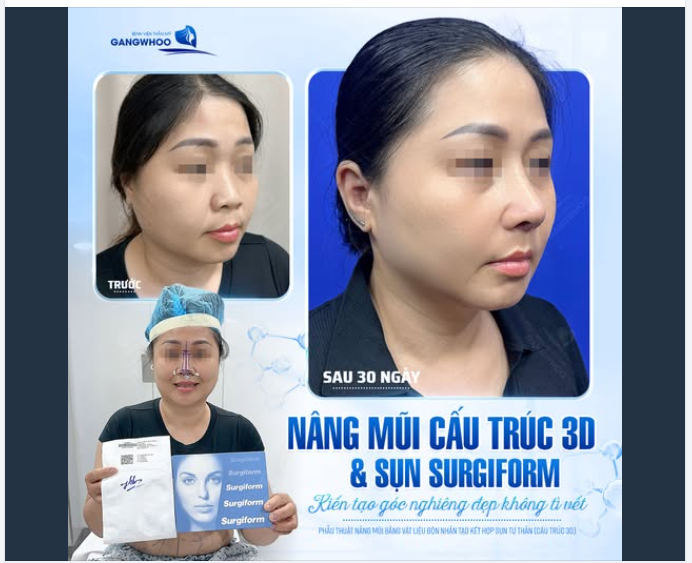 Tại BVTM Gangwhoo, mỗi dáng mũi được thiết kế cá nhân hóa theo từng gương mặt, đảm bảo đẹp tự nhiên, không thô cứng hay lộ dấu vết can thiệp. Ứng dụng công nghệ nội soi 4K + vi phẫu, quá trình nâng mũi diễn ra chính xác, an toàn, giúp form mũi ổn định và bền đẹp theo thời gian.