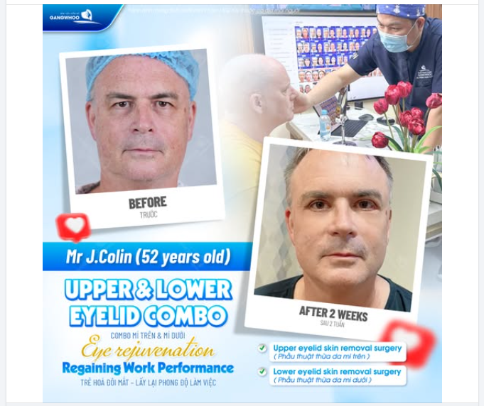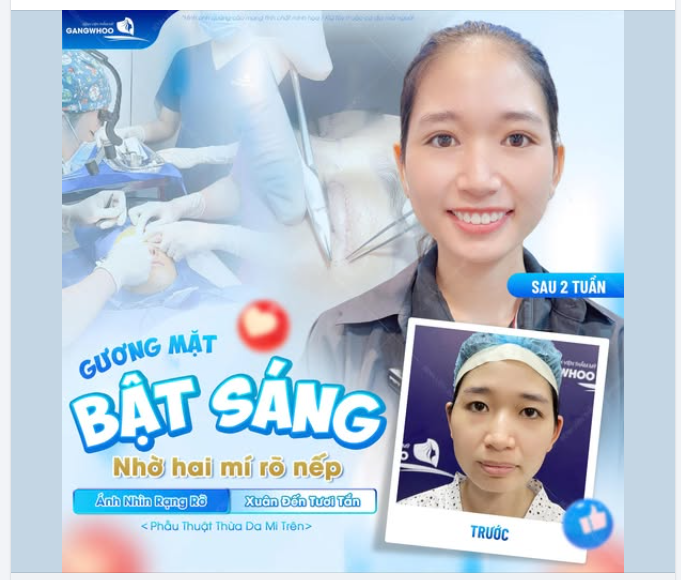 Khách hàng chia sẻ: Bạn bị sụp cơ một bên mi mắt do tại nạn, ảnh hưởng đến dây thần kinh, mí mắt dần sụp và che khuất tầm nhìn những năm gần đây. Nhờ mạng xã hội mà bạn biết đến Gangwhoo chữa trị và kết quả đã cải thiện rõ rệt