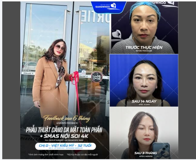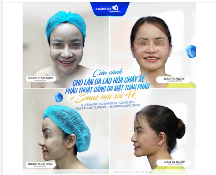 Nếu bạn đang đối mặt với tình trạng da chùng nhão, nếp nhăn sâu hay cơ mặt chảy xệ làm mất đi đường nét thanh tú, thì phẫu thuật căng da mặt toàn phần + Smas nội soi 4K tại Bệnh viện thẩm mỹ Gangwhoo chính là "chìa khóa vàng" để quay ngược kim đồng hồ.