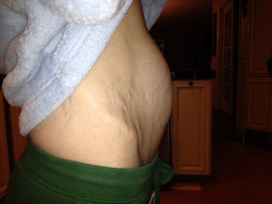 Tôi đã đến hai buổi tư vấn và cả hai bác sĩ nói là tôi nên làm tạo hình thành bụng mini. Tôi không quan tâm lắm đến chuyện loại bỏ các vết rạn da. Tôi chỉ muốn chữa cơ bụng bị xổ khiến bụng tôi phình to, đặc biệt sau khi ăn... như trong ảnh chụp vào lúc cuối ngày. Tôi thường xuyên tập luyện và ăn uống cẩn thận. Tôi nặng 46 kg (cao 1m58), nhưng sau khi mang thai nhiều lần, bụng tôi trông thế này đây. Cảm ơn ý kiến của các bác sĩ!