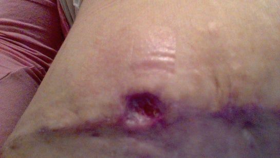 Cái chất trắng nằm trong vết mổ combo ngực bụng này là gì? Và tôi sẽ phải dùng băng để từ ẩm đến khô trong bao lâu nữa nếu vết hở không còn sâu như trước?