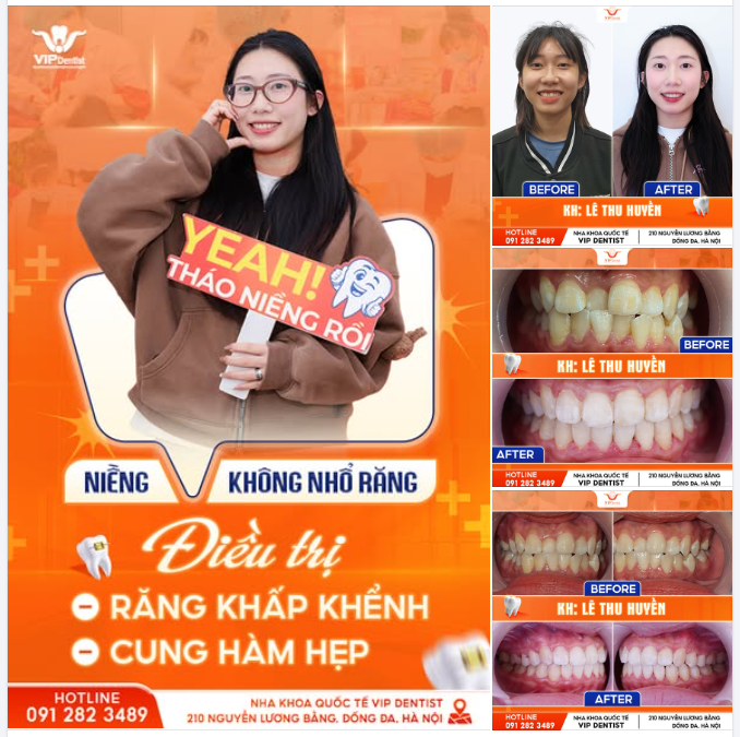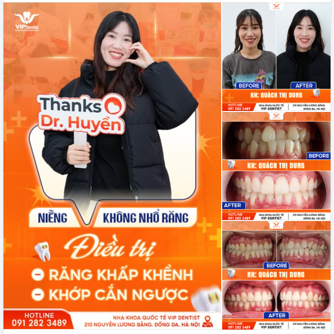 Nếu bạn cũng đang gặp các vấn đề hay tình trạng về răng miệng, đừng ngại Inbox ngay cho VIP Dentist để được bác sĩ Lương Huyền hỗ trợ cho bạn nhé.