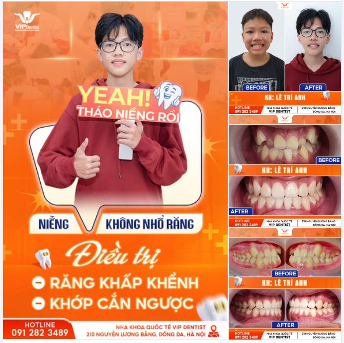 “Từ nhỏ thì em đã bị khớp cắn chéo, gây ra rất nhiều khó khăn trong việc ăn nhai. Thường trường hợp này là phải phẫu thuật nhưng nhờ phác đồ điều trị Niềng Răng Không Nhổ Răng của bác sĩ Lương Huyền, khớp cắn em đã đều chuẩn và gương mặt cũng cân đối hơn” - Bạn Trần Quỳnh Trang chia sẻ.