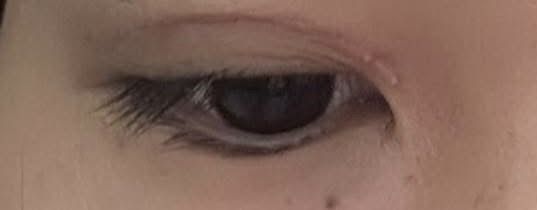 Mọi người cho em hỏi cắt chỉ mí mắt xong ở khoé mắt nổi cục mụn trắng như ảnh thì có vấn đề gì không ạ?