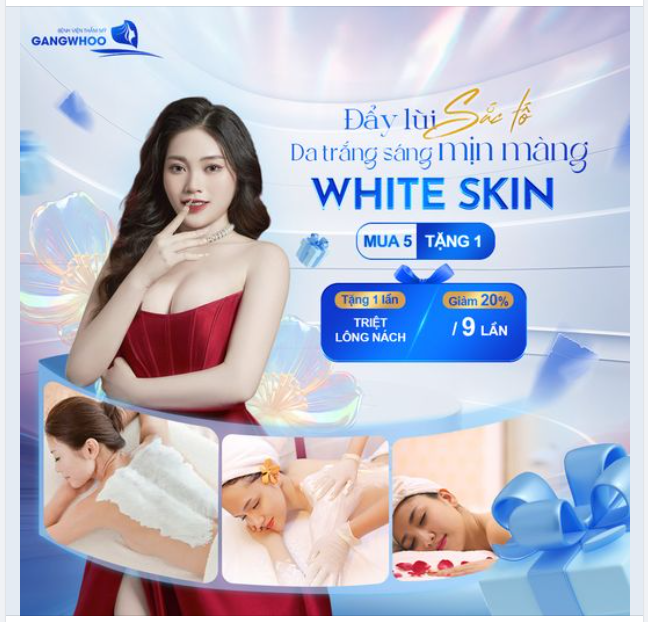 ➤Một lần tắm trắng bằng cả tháng dưỡng da. Chị em tranh thủ ghé Bệnh viện thẩm mỹ Gangwhoo để có làn da đẹp không tì vết và nhận ưu đãi hấp dẫn lên đến 20% trong tháng 2 này nhé!