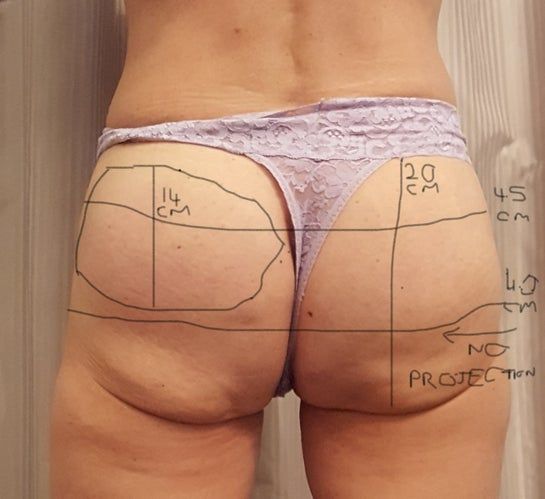Đã đặt túi độn và cấy mỡ mông nhưng mông dưới vẫn bị chảy xệ, xuất hiện cuộn mỡ