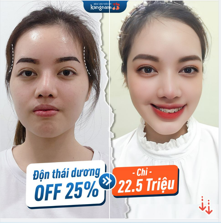 Thái dương đầy đặn, cân đối chỉ sau 60 phút phẫu thuật. Xem thêm tạo hình thái dương