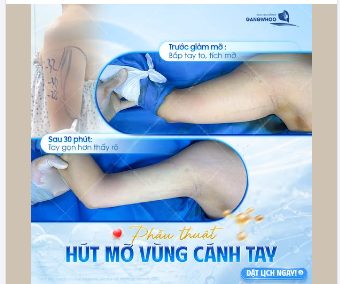Chị tìm đến dịch vụ hút mỡ cánh tay vì bắp tay của mình dễ tích mỡ, kém săn chắc và khó diện các kiểu áo ôm. Trải nghiệm hút mỡ bắp tay ở BVTM Gangwhoo, chị chia sẻ: " Lúc làm xong không thấy đau gì luôn, biết vậy đã đi làm sớm đẹp sớm. Điều chị bất ngờ nhất quy trình khám sức khỏe kỹ lưỡng, các bước đều có điều dưỡng chăm sóc ân cần."