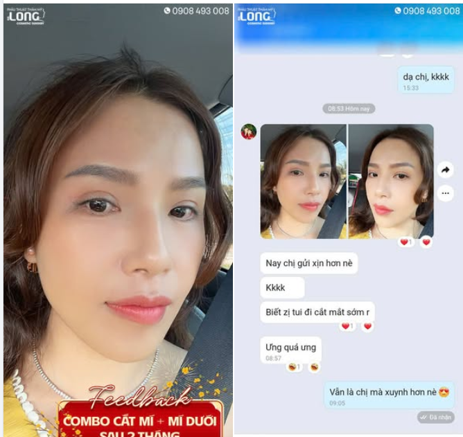 Chị khách vừa cắt mí tại PTTM Bác sĩ Long cách đây ít ngày và đây là điều chị nhắn gửi: