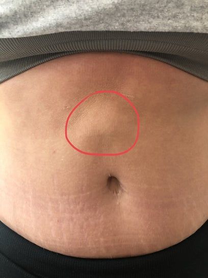 Đã làm combo ngực bụng được một năm, bụng có cục lồi trông như bị thoát vị mà không có dịch, có bình thường hay không?