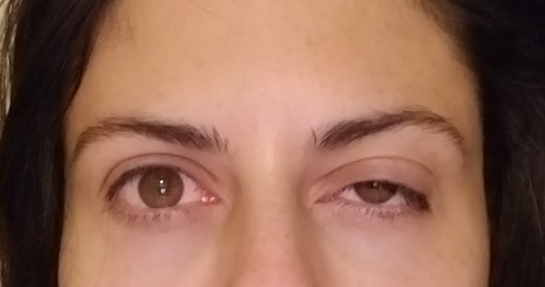Mí mắt trên bị sụp nặng sau khi tiêm Dysport xóa nếp nhăn trán và nếp cau mày