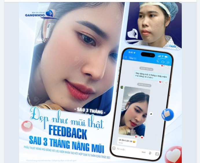 Bên cạnh đó nhờ công nghệ nội soi 4K + vi phẫu giúp hạn chế tối đa xâm lấn, khách hàng không cảm thấy đau, khó chịu hay sưng bầm nhiều mà sinh hoạt và làm việc bình thường sau khi phẫu thuật nâng mũi bằng vật liệu độn nhân tạo kết hợp sụn tự thân (cấu trúc 3D).