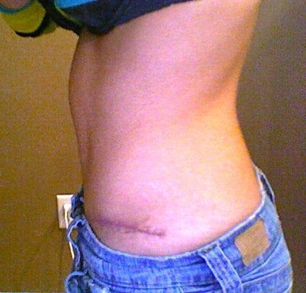 Tôi muốn biết liệu sưng nề bên trên rốn sau nhiều tháng như thế có bình thường không? Sáng sớm mới thức dậy, bụng tôi hơi hơi phẳng (ảnh đầu), nhưng đến cuối ngày, bụng tôi sưng như đang mang bầu hoặc ít nhất là bụng bị nhô ra ngoài. Mặc quần áo trông rất kỳ lạ. Tôi không ngại tập luyện nếu có thể làm giảm hiện tượng này (nếu có bài tập để tập). Tôi đã giảm cân từ lúc làm phẫu thuật, mà người tôi vốn đã nhỏ sẵn rồi. Tôi cao 1m52, nặng 50 kg. Có cách nào để biết nếu cơ bụng đã thắt lại bị xổ quá mức không?