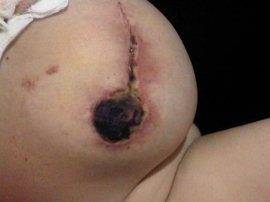 Một trong những núm vú của tôi đã chuyển sang màu đen hoàn toàn sau khi làm thu nhỏ vú, tôi nên làm gì?